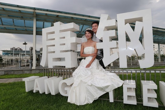 一對在河北鋼鐵集團(tuán)唐山鋼鐵公司工作的新人在花園般的廠區(qū)拍攝結(jié)婚照。記者 任正來 攝