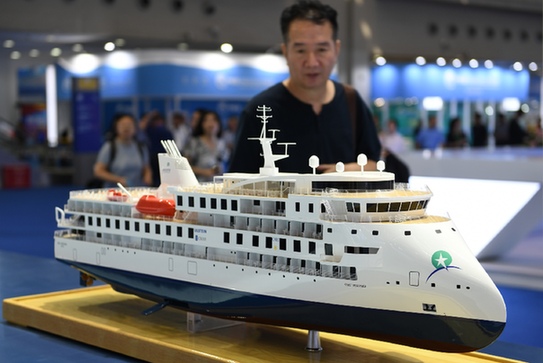 近日,2019中國海洋經(jīng)濟博覽會在深圳開幕,觀眾在招商局展臺了解首艘國產(chǎn)極地探險郵輪“格雷格·莫蒂默”號。(記者 毛思倩 攝)