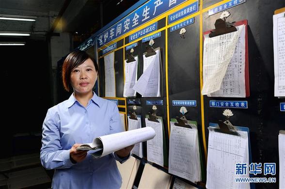 首批農(nóng)民工全國人大代表之一胡小燕在曾經(jīng)工作過的陶瓷廠檢查職工權(quán)益保護(hù)工作(2013年11月5日攝)。新華社記者 劉大偉 攝