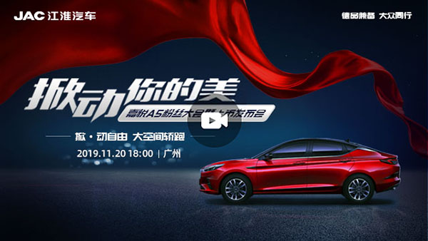 江淮嘉悅A5粉絲大會暨上市發(fā)布會于2019年11月20日18:00在廣州舉行。