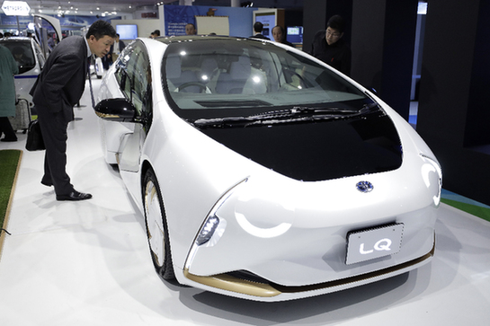 第46屆東京車展于10月25日至11月4日對(duì)公眾開放。人們?cè)谌毡緰|京車展媒體預(yù)展上參觀豐田L(fēng)Q概念車。新華社/歐新