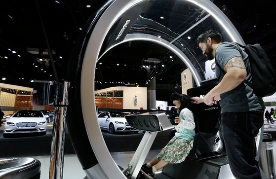 11月22日,在美國2019年洛杉磯車展上,一名小女孩通過VR虛擬現(xiàn)實(shí)技術(shù)體驗(yàn)汽車駕駛。新華社發(fā)