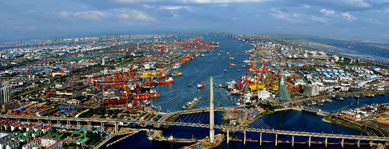 天津港主航道俯瞰全貌。資料照片