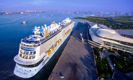 一艘郵輪??吭谔旖驀H郵輪碼頭。資料照片