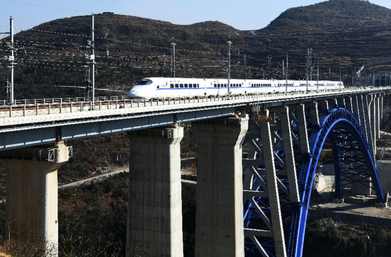 12月16日,一列動車組列車從成貴高鐵西溪河大橋上駛過。記者 楊文斌 攝