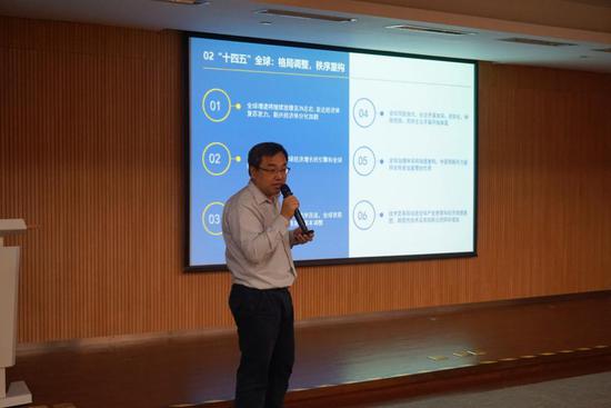 之后,浙江清華長(zhǎng)三角研究院產(chǎn)城融合研究中心主任陳偉就“十四五”宏觀經(jīng)濟(jì)形勢(shì)以及長(zhǎng)三角一體化戰(zhàn)略為主題內(nèi)容進(jìn)行分享。內(nèi)容圍繞“十四五”宏觀形勢(shì)研判和十個(gè)“關(guān)注點(diǎn)”的解答兩方面展開(kāi),深入分析了“十四五”及“兩個(gè)一百年”的歷史大背景下,全球經(jīng)濟(jì)格局調(diào)整、秩序重構(gòu),中國(guó)經(jīng)濟(jì)進(jìn)入“新常態(tài)”,經(jīng)濟(jì)發(fā)展邁入“5”時(shí)代,市場(chǎng)消費(fèi)結(jié)構(gòu)發(fā)生深刻變化,產(chǎn)業(yè)創(chuàng)新整體穩(wěn)步提升、局部重點(diǎn)突破,國(guó)企統(tǒng)籌逐步強(qiáng)化,監(jiān)管漸趨靈活的新趨勢(shì)。