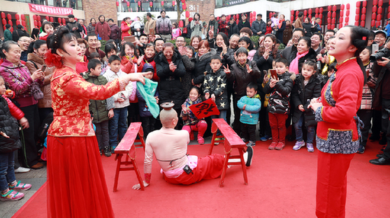 近年來,瀘州市江陽(yáng)區(qū)為大力弘揚(yáng)社會(huì)主義核心價(jià)值觀,鞏固全國(guó)文明城市成果,不斷豐富社區(qū)黨員群眾的精神文化生活。圖為在江陽(yáng)區(qū)張壩景區(qū)開展“三下鄉(xiāng)”文藝活動(dòng)。