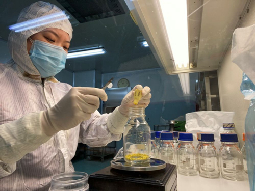 進(jìn)入車間前,每位員工按集團(tuán)統(tǒng)一要求更換防護(hù)服,并進(jìn)行洗消作業(yè),確保生產(chǎn)全程無(wú)菌。