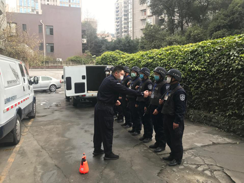 中融安保集團(tuán)有限責(zé)任公司翼虎押運(yùn)大隊(duì)出發(fā)前進(jìn)行消毒準(zhǔn)備
