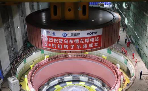 近日,由中國能建葛洲壩集團(tuán)承擔(dān)安裝施工任務(wù)的烏東德水電站左岸地下電站5號(hào)機(jī)組轉(zhuǎn)子成功吊裝。資料照片