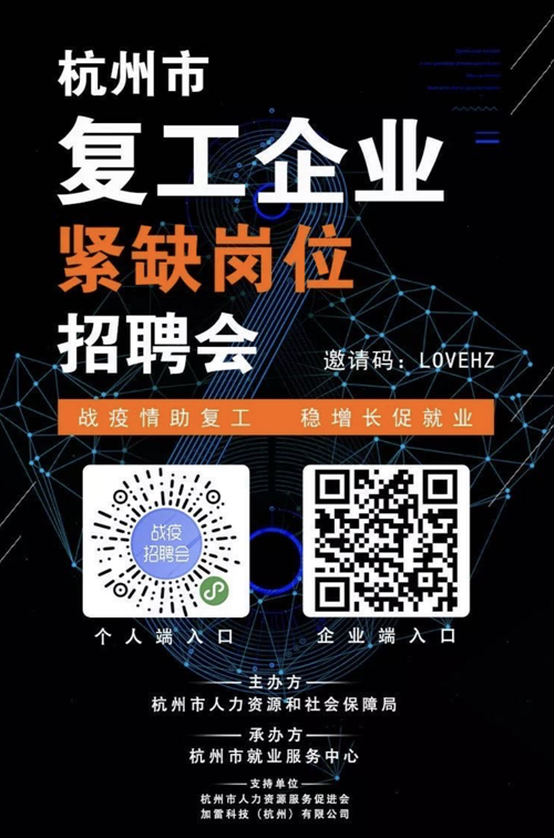 如果您對來杭工作有興趣,可點(diǎn)擊下圖杭州“線上招聘會”,查看杭州復(fù)工企業(yè)用工需求。杭州歡迎您!