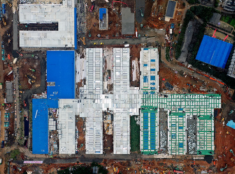 在武漢火神山、雷神山醫(yī)院建設(shè)中,基于北斗衛(wèi)星導(dǎo)航系統(tǒng)的高精度定位設(shè)備火速馳援,確保工地大部分放線測量一次完成。這是無人機拍攝的武漢火神山醫(yī)院。記者 李賀 攝