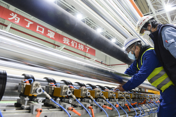 3月6日,經(jīng)過(guò)12個(gè)晝夜努力,中國(guó)石化北京燕山石化從無(wú)到有建成熔噴布生產(chǎn)線(xiàn),產(chǎn)出合格產(chǎn)品。