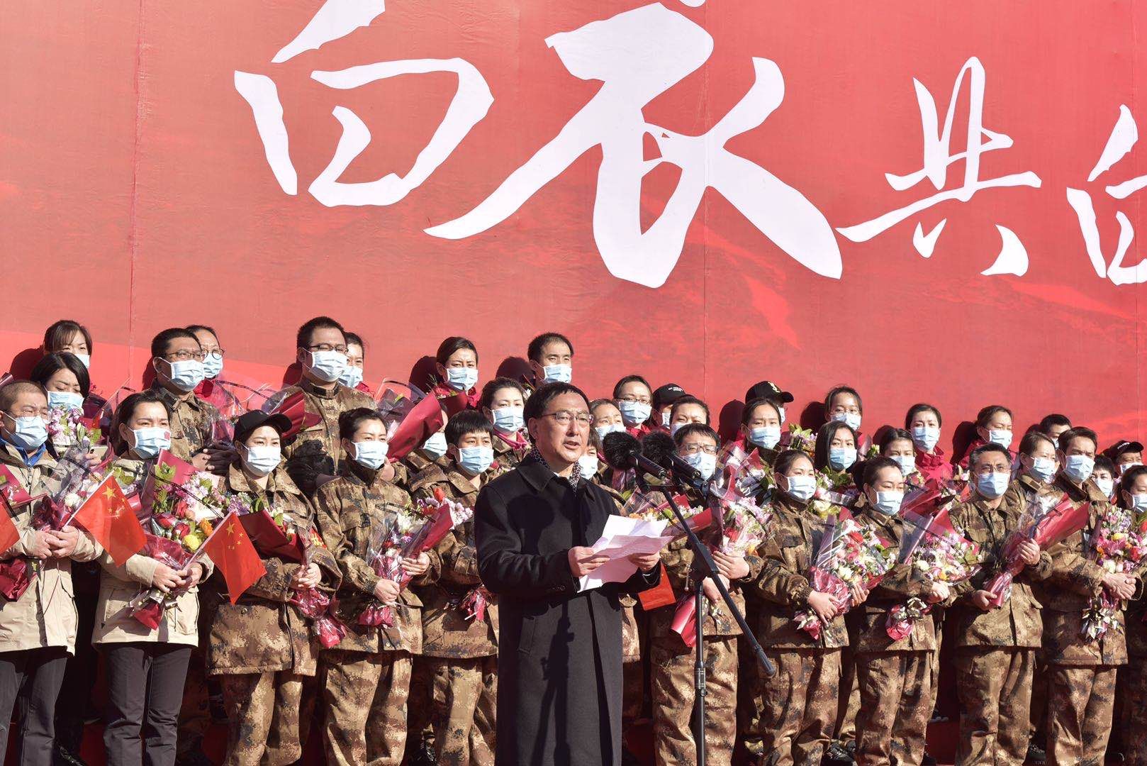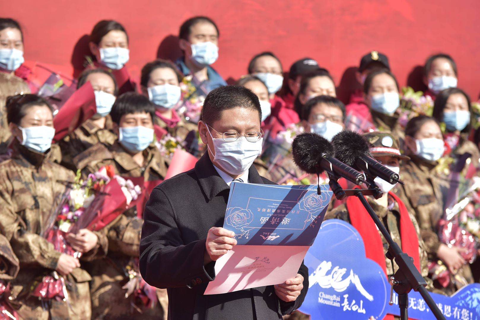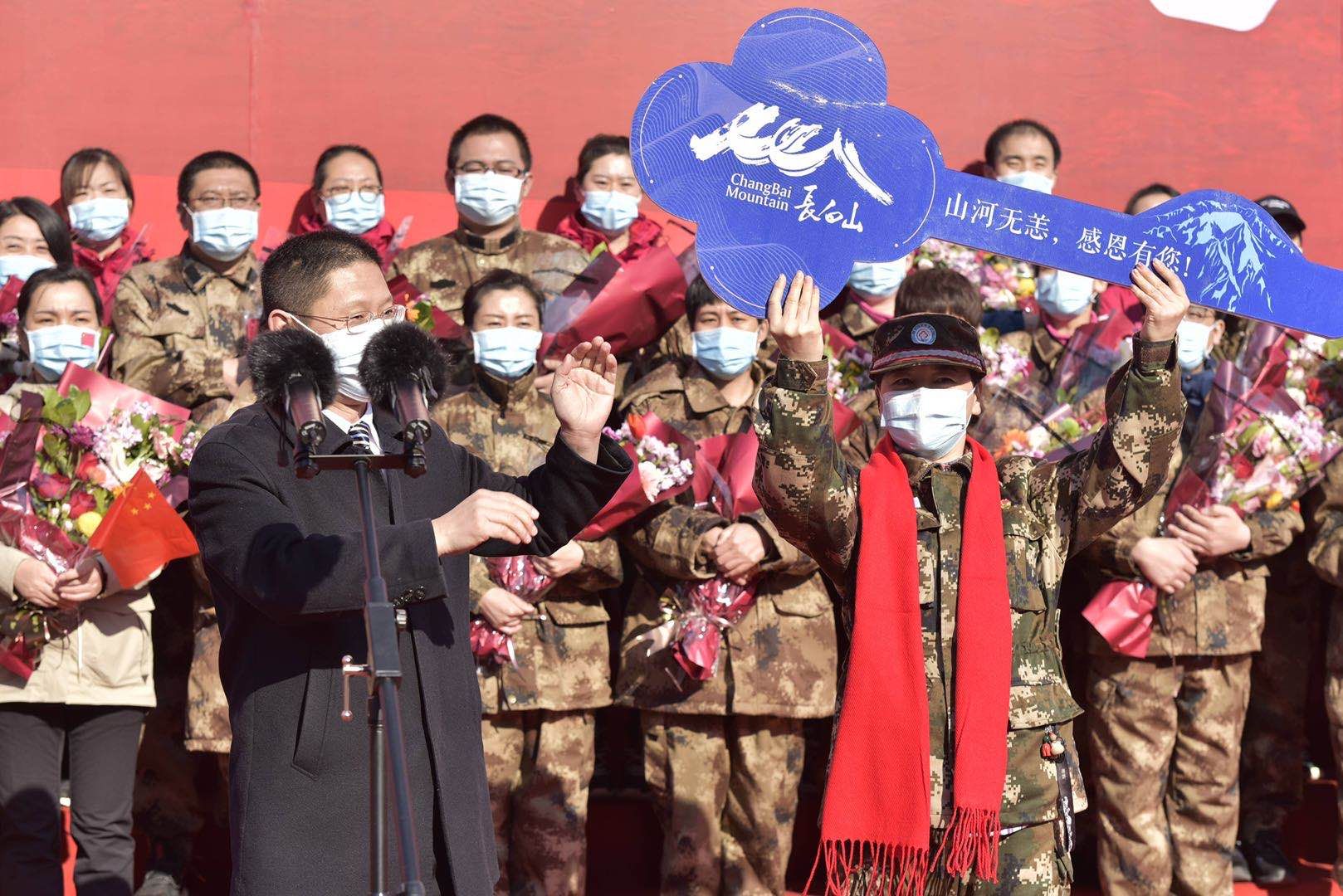 ????長白山管委會二級巡視員祖德文在儀式上代表長白山人民發(fā)表了熱情洋溢的致辭。祖德文說,兩個多月前,你們聽從習總書記的號令,與全國各地支援湖北醫(yī)療隊一道,舍小家顧大家,舍身取義、舍生忘死,義無反顧奔赴抗疫一線,保衛(wèi)武漢、保衛(wèi)湖北!你們始終堅持把人民群眾身體健康和生命安全放在第一位,同時間賽跑、與病魔較量,以優(yōu)良作風和精湛技術挽救了一個又一個生命,用實際行動譜寫了一曲感天動地、氣壯山河的生命贊歌!