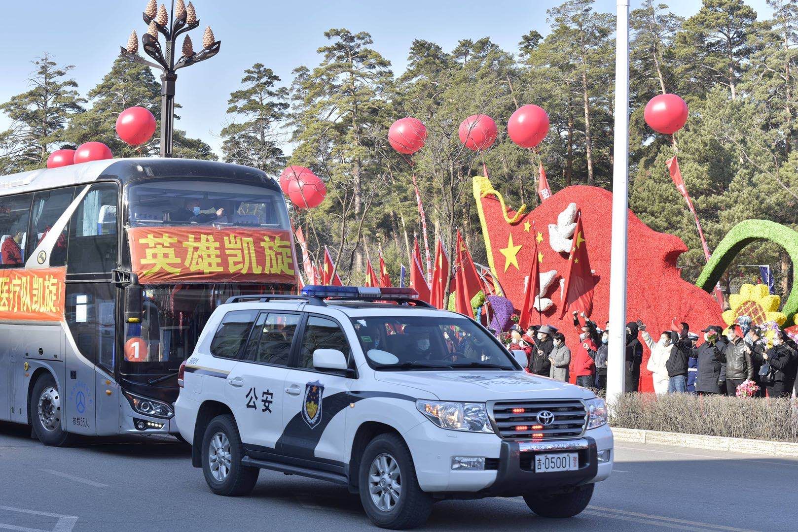 ????長白山衛(wèi)健局局長張在茂主持儀式。省衛(wèi)健委副主任楊春光、省衛(wèi)健委王哲、通化市衛(wèi)健委于鳳翔、長白山管委會旅游文體局耿德勇、白山市衛(wèi)健委孫學明、公主嶺市衛(wèi)健局林澤禮、吉林省前衛(wèi)醫(yī)院李海波,以及相關部門、長白山池北區(qū)群眾、各地迎接抗疫英雄的車隊等3000余人參加了歡送儀式。