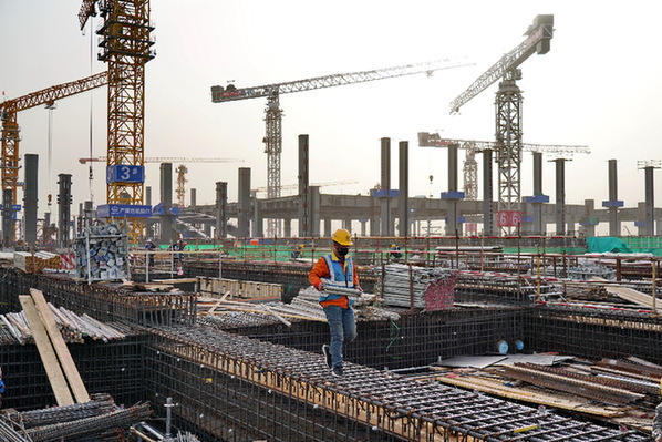工人在京雄城際鐵路雄安站建設(shè)現(xiàn)場(chǎng)施工。記者 牟宇 攝