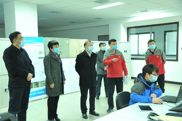 高紅衛(wèi)(左三)現(xiàn)場調(diào)研重大項(xiàng)目疫情防控和復(fù)工復(fù)產(chǎn)情況。(航天科工集團(tuán)提供)