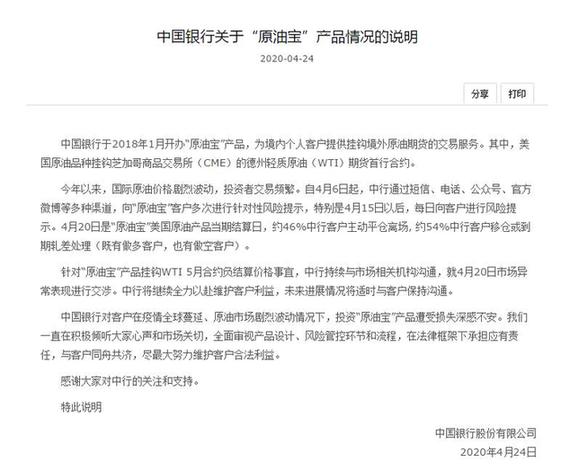 此次是自“原油寶”事件發(fā)生后,中行就此事發(fā)布的第三次說明,說明全文如下: