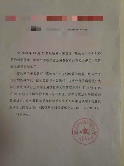此前,多個投資者已將中行訴至銀保監(jiān)會及各地監(jiān)管分局,記者從投資者處了解到,目前部分人得到了來自監(jiān)管部門的反饋。