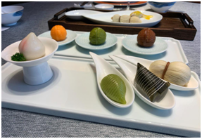 網(wǎng)友最“饞”的還是“一點宴天下”里的點心,包括為2018年首屆進博會歡迎晚宴研發(fā)的“荷韻套點”,為2014年亞信峰會期間各國第一夫人定制的“夫人套點”。每套點心里包含多種花樣:有狀似蓮藕、每節(jié)一個味道的酥點,做成錦鯉樣子的鱖魚餃子,寓意長享福壽的夾心壽桃……個個小巧別致,形狀逼真,美的像一幅畫,海派風(fēng)格十足?!熬碌焦撬琛钡狞c心讓主播遲遲不忍下口,在網(wǎng)友再三催促下,才舍得一個一個吃下,分享口口驚喜,網(wǎng)友隔屏直呼“舒服了”。