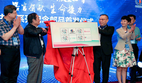 本次活動中,中國器官移植發(fā)展基金會聯(lián)合中國郵政北京分公司共同推出了“器官捐獻 生命接力”主題系列紀念郵品,這是中國郵政在國內首次發(fā)布“器官捐獻”主題紀念郵品。郵品以黃潔夫理事長題寫的“器官捐獻 生命接力”及韓美林先生設計的中國器官移植發(fā)展基金會徽標為主要元素,加上“施予受”器官捐獻志愿登記標志,共同傳遞愛與希望、大愛奉獻的寓意。(圖片來源:中國器官移植發(fā)展基金)