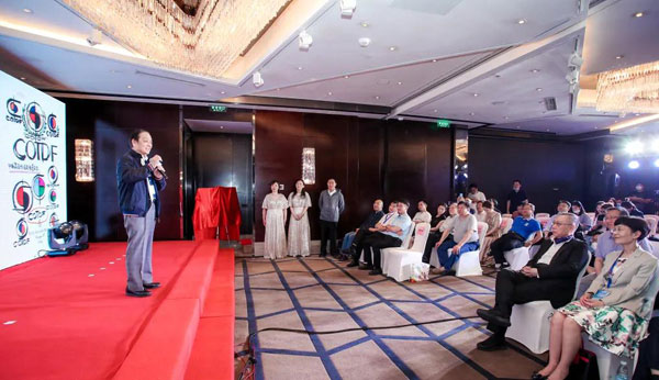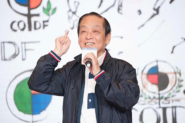 ▲韓美林在 “中國器官移植發(fā)展基金會(huì)徽標(biāo)”發(fā)布儀式上動(dòng)情致辭