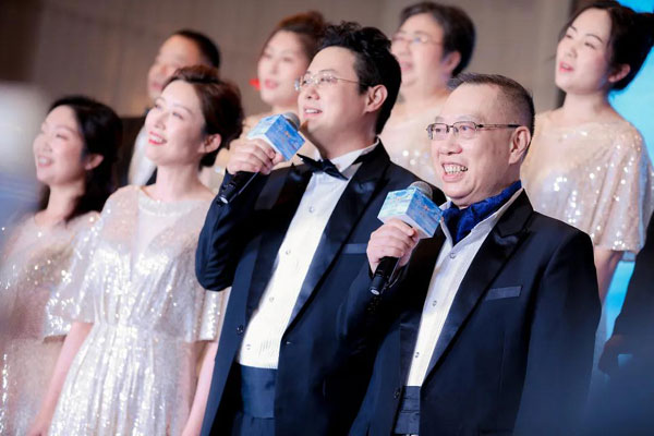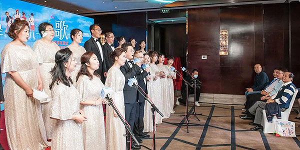 ▲在黃潔夫的領(lǐng)唱下,眾人合唱,用歌聲向著未來飛翔