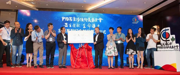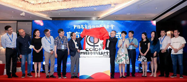 ▲韓美林、黃潔夫及眾位嘉賓共同為“中國器官移植發(fā)展基金會(huì)徽標(biāo)”揭幕
