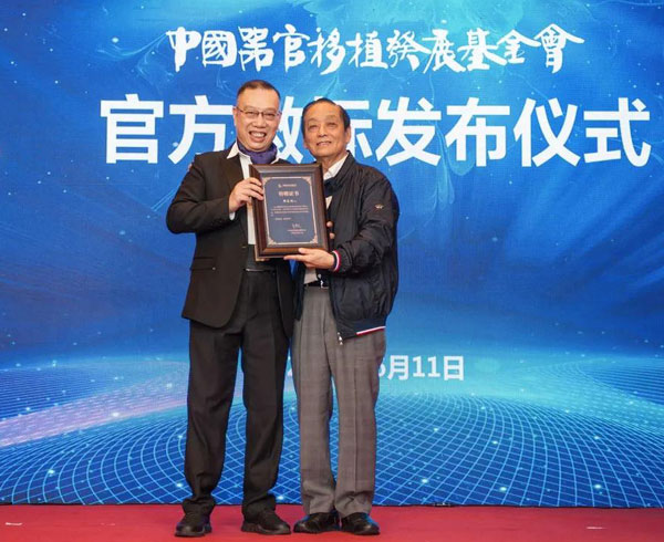 ▲黃潔夫?yàn)轫n美林頒發(fā)“中國器官移植發(fā)展基金會(huì)終身榮譽(yù)顧問”聘書