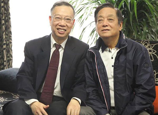 ▲韓美林與黃潔夫“肩碰肩”