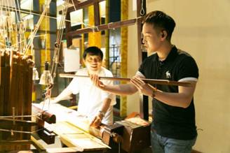 活動(dòng)現(xiàn)場,南京云錦非遺技藝傳承人周雙喜大師為觀眾現(xiàn)場展示云錦織造技藝,不容一絲差錯(cuò)的云錦織造技藝,既體現(xiàn)了中國古人手工藝的巧奪天工,也展示了中華工匠精神的源遠(yuǎn)流長、博大精深。