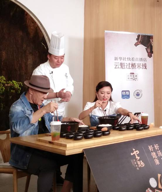 米線要過橋,鮮花口中嬌。7月25日,云南過橋米線和鮮花餅亮相新華社“快看”抖音直播間“百姓味道 周末探店”節(jié)目,著名導演、演員于榮光作為嘉賓全程參與整個節(jié)目,帶領網(wǎng)友品嘗了云魁(昆明花之城店)的過橋米線和花miao(昆明花之城店)的玫瑰點心,并與現(xiàn)場食客及網(wǎng)友進行了熱情互動。