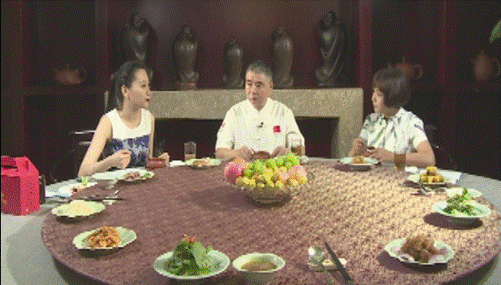 在觀眾的強烈要求下,李志順大師還現(xiàn)場教授了嘉賓一道快手時令菜——撣熗肉片?;鄣呢i肉片用開水燙熟,過涼水后加入調(diào)好的醬汁,再配以當(dāng)季蔬菜,這道清爽美味的涼菜在夏季極受歡迎。