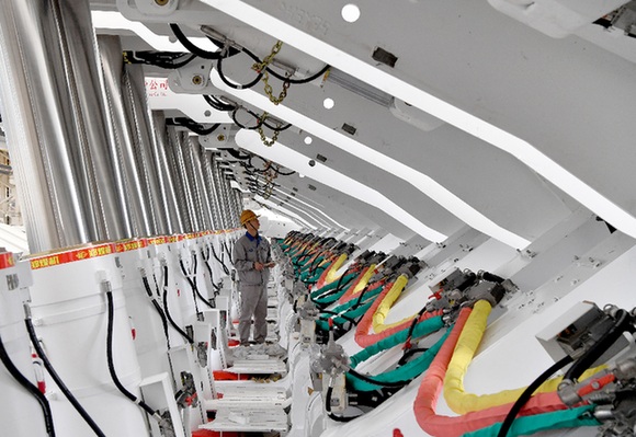 中信重工為“洛陽地鐵”制造的14臺(tái)牡丹號(hào)系列盾構(gòu)機(jī),填補(bǔ)了洛陽軌道交通高端裝備制造空白。資料照片