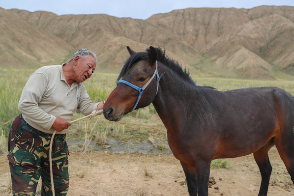 牧民那木德力在草場(chǎng)放馬。記者 馬希平 攝