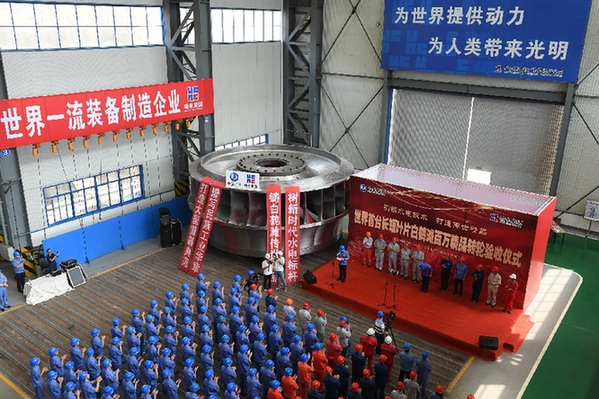 世界首臺長短葉片白鶴灘百萬精品轉(zhuǎn)輪順利通過驗收。資料照片