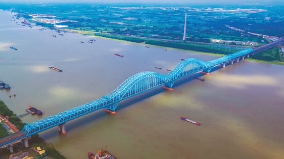 中鐵寶橋參建的代表世界高鐵最高水平的京滬高鐵控制性工程——南京大勝關(guān)長江大橋。資料照片