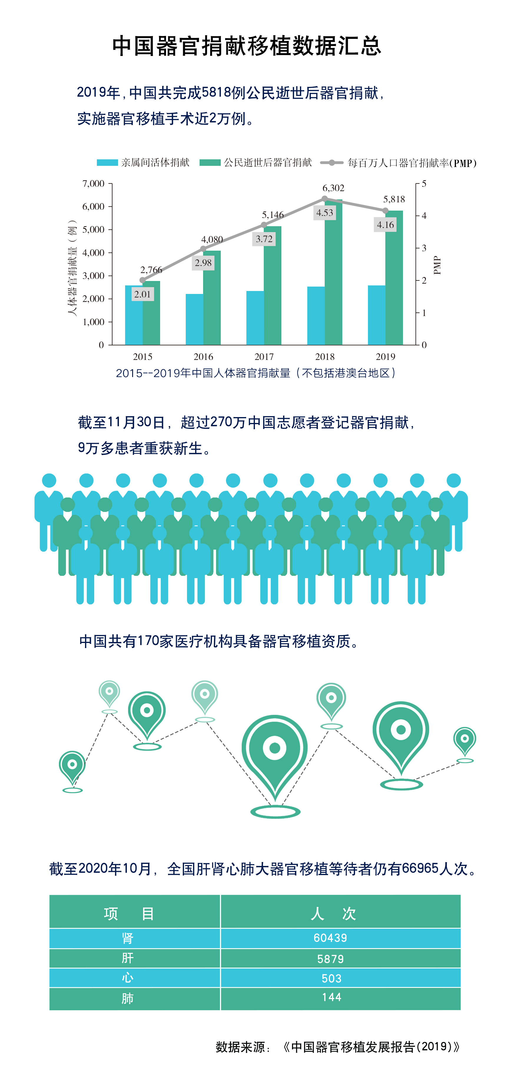 ——進(jìn)一步拓寬器官捐獻(xiàn)來源滿足移植需求?!爸袊鞴倬璜I(xiàn)數(shù)量和捐獻(xiàn)率雖逐年增長,但與國內(nèi)患者的巨大需求相比相距甚遠(yuǎn)。”王海波說,截至2020年10月,全國仍有60439人次等待腎移植、5879人次等待肝移植、503人次等待心移植、144人次等待肺移植。