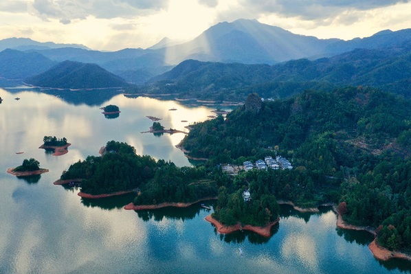 三明市泰寧縣大金湖畔梅口鄉(xiāng)一處水岸新村。記者 姜克紅 攝
