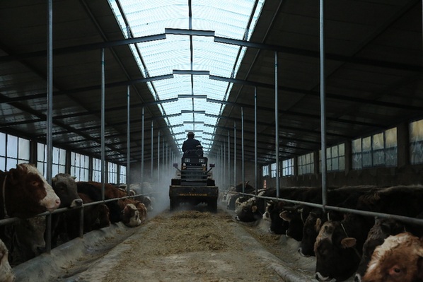 隆冬時(shí)節(jié),六盤山銀裝素裹。記者來到固原市原州區(qū)張易鎮(zhèn)閆關(guān)村時(shí),王占有正開著拖拉機(jī)給5個(gè)棚里的170多頭肉牛喂青貯飼料。添草飲牛、備草備料、清理棚圈……他忙得熱火朝天。