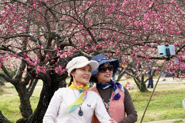 春節(jié)假期,武漢東湖梅園的梅花競相綻放,吸引眾多市民來這里賞梅拍照。記者 余國慶 攝