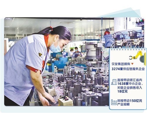 位于浙江省寧波市的貝發(fā)集團(tuán)以制筆起家,是目前國內(nèi)文具行業(yè)的龍頭企業(yè)。貝發(fā)集團(tuán)整合產(chǎn)業(yè)鏈、供應(yīng)鏈,形成“一支筆、一條鏈、一個(gè)平臺”的創(chuàng)新發(fā)展戰(zhàn)略。如今,貝發(fā)集團(tuán)擁有3274家供應(yīng)鏈服務(wù)企業(yè),直接帶動浙江省內(nèi)1638家中小企業(yè)、關(guān)聯(lián)企業(yè)銷售收入18億元,間接帶動150億元產(chǎn)業(yè)規(guī)模,新增產(chǎn)業(yè)鏈就業(yè)崗位1萬個(gè)以上。