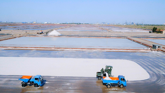 山東國惠集團(tuán)旗下山東鹽業(yè)菜央子鹽場正在生產(chǎn)中。資料照片