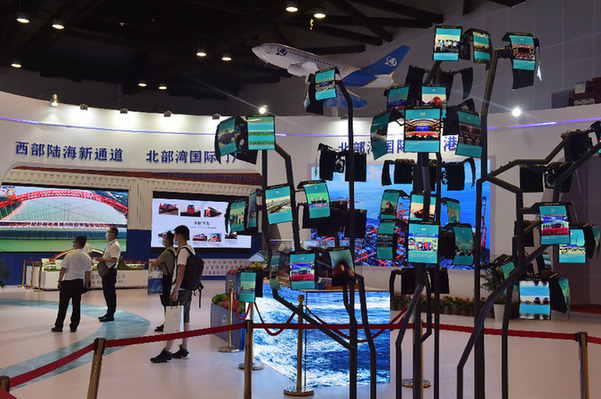 ????這是9月12日在廣西南寧國(guó)際會(huì)展中心拍攝的西部陸海新通道展區(qū)。新華社記者 劉嶺逸 攝