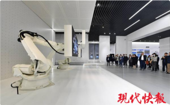 隨著智能機械臂的揮舞,三塊電子展示屏不斷變換位置,顯現(xiàn)出不同的內(nèi)容 …… 這是 10 月 18 日上午,"2021 年全國主流媒體看常州 " 采訪團在中國(常州)德國中心展廳看到的場景。