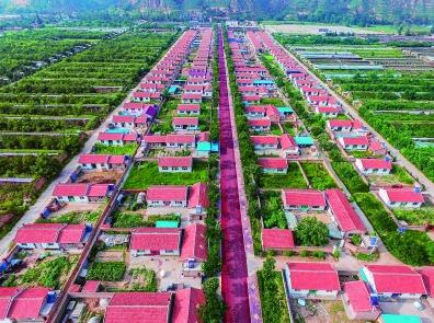 一座座新建的青磚黛瓦的房舍掩映在綠蔭中,透出勃勃生機。遠眺車窗外,辣椒、西芹、甘藍、黃花菜等多彩植物,構成一幅幅絢爛畫卷,繞山腰纏繞、纏繞;屋頂上一排排光伏板,在陽光下漾著粼粼波光。