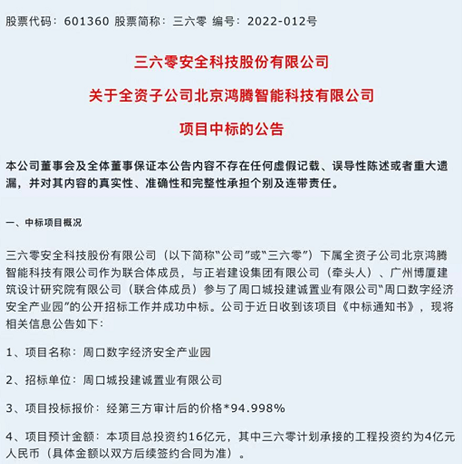 2月16日,三六零旗下的360政企安全集團與河南省周口市人民政府達成戰(zhàn)略合作,成功中標4億元周口數字城市安全大腦項目。雙方將共同打造周口數字城市安全大腦,集中建設網絡安全基礎設施賦能多個數字化應用場景,為周口市建設中原崛起新高地增添新動能。