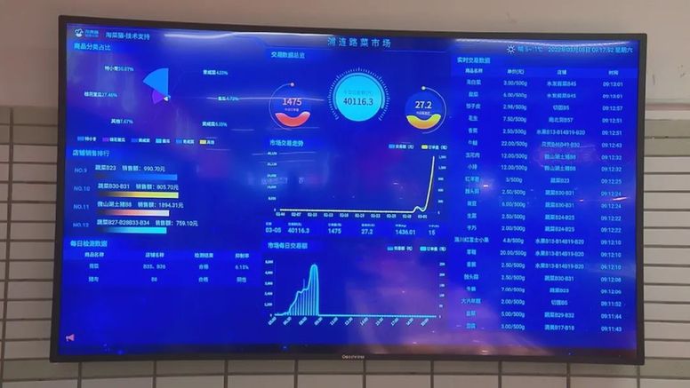 浦連菜場運(yùn)營方負(fù)責(zé)人邵宇向記者介紹:“電子屏連接了整個市場的智慧秤,它的作用是綜合性的。秤上的數(shù)據(jù)實(shí)時反映了目前市場的交易情況,同時我們也掌握到每個攤位經(jīng)營戶的經(jīng)營情況,有一些銷售情況不太好的,我們會及時對他的業(yè)態(tài)進(jìn)行調(diào)整,同時還指導(dǎo)他如何去改變,能更好地經(jīng)營下去,這樣也能夠提升我們整個市場的營商環(huán)境。”