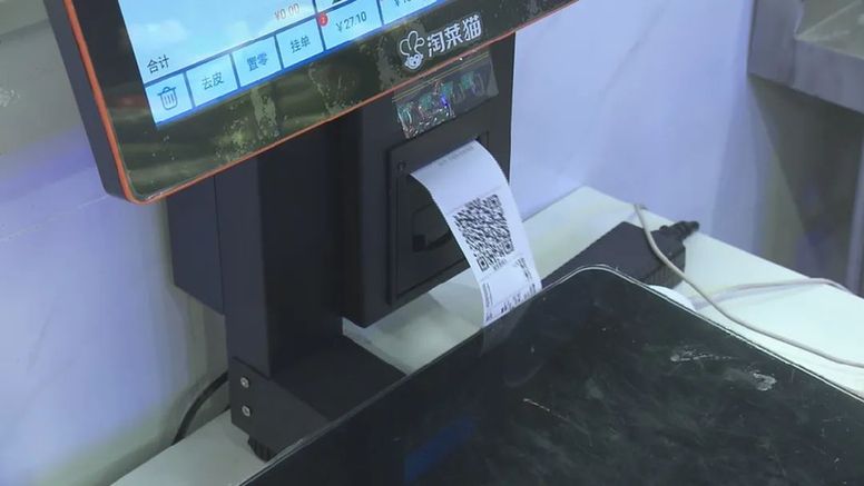 值得關(guān)注的是,在完成每次交易后,每個攤位的智能秤都會吐出一張收銀條,上面不僅有交易明細(xì),還有一個二維碼,掃一掃即可完成每件商品的溯源,而墻上這臺實(shí)時滾動的電子屏也能讓菜場、攤販和顧客對于各類購物信息和數(shù)據(jù)一目了然。