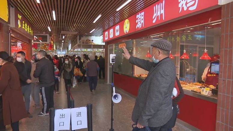 上午9點(diǎn),重裝開業(yè)的浦連菜場吸引了不少老主顧的腳步。為應(yīng)對開業(yè)首日客流潮,菜場運(yùn)營方加大防控力度,時刻關(guān)注場內(nèi)人數(shù),避免顧客扎堆,每個出入口還有專人測量顧客體溫、確認(rèn)口罩佩戴情況。